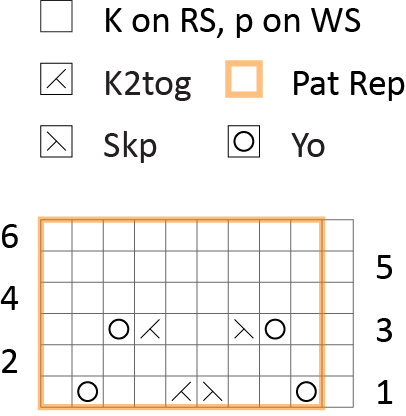 Row 1 (RS): K1, *yo, k2, ssk, k2tog, k2, yo, k1; rep from * to end.