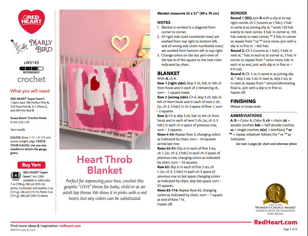The response to this free crochet blanket pattern (my Heart Throb Blanket) has been incredible! It’s one of the most popular patterns available on the Red Heart Website that was released this month. I am so happy that you like it!